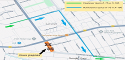 Од раскрснице Прерадовићева/Рељковићева аутобуси ће саобраћати Рељковићевом улицом, затим преко друмско-железничког моста и Венизелисовом улицом до Београдског кеја, настављати Тргом незнаногог јунака до Булевара Михајла Пупина и даље саобраћати редовним трасама кретања.