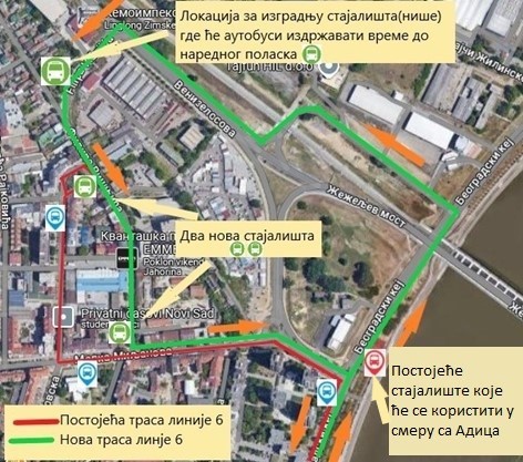 Od početnog novoizgrađenog stajališta autobusi će po redu vožnje saobraćati preko kružnog toka do Ulice kralja Petra I i redovnom trasom saobraćati do Sajlova i Novog Sada, koristeći usput sva redovna stajališta.
