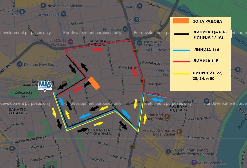 НА СВИМ НАВЕДЕНИМ ПОЛАСЦИМА ПРИВРЕМЕНО СЕ УКИДАЈУ СТАЈАЛИШТА „ПУТ НОВОСАДСКОГ ПАРТИЗАНСКОГ ОДРЕДА – СТАНДАРД“ (у оба смера) И „ПУТ НОВОСАДСКОГ ПАРТИЗАНСКОГ ОДРЕДА – АЛБУС“.